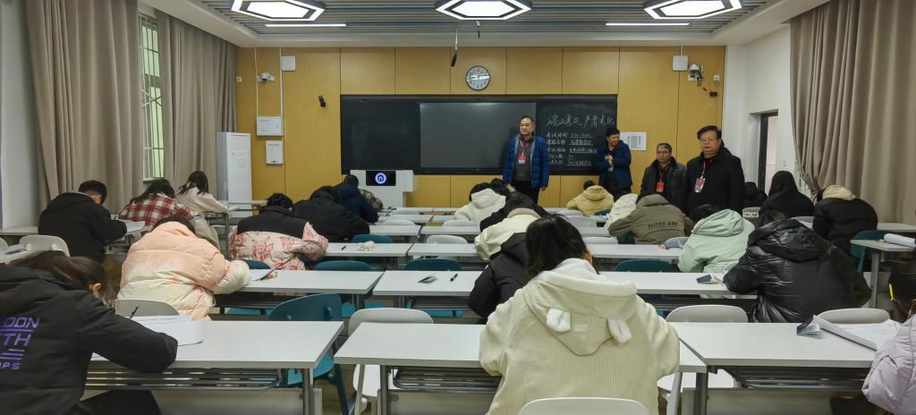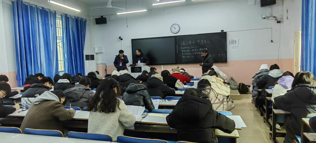 为加强公司学风建设,严肃考风考纪,公司开展了2023—2024学年第一学期期末考试巡考工作。自1月3日开考以来,公司党政领导班子成员带领教学秘书,持续深入考场进行巡视。