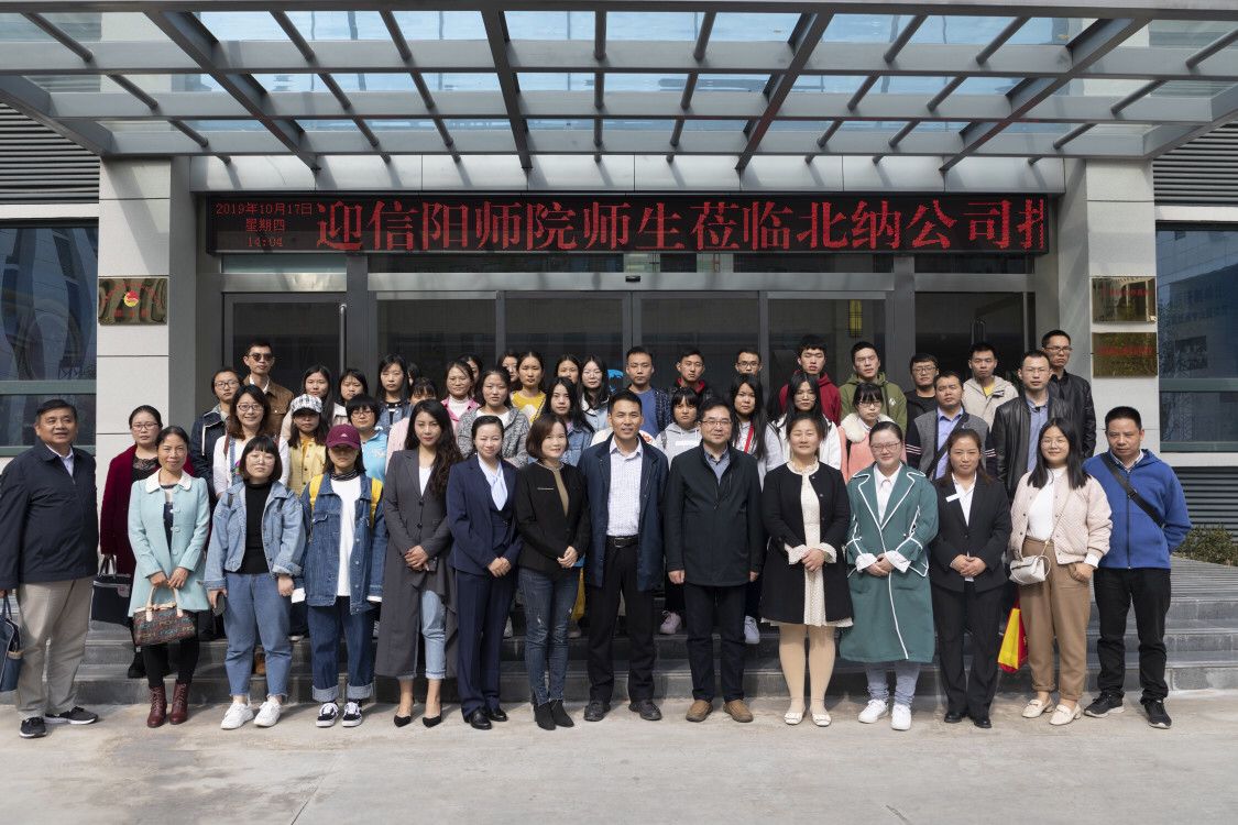 10月17日,经理袁红雨带队,副经理宋新强,党委副书记杨霁虹,员工带队老师赵昕梅、王天文、陈震、田华、许威、张丽丽、张朋朋及教学管理人员胡月老师赴商城北纳创联生物科技有限公司检查公司员工实习情况。