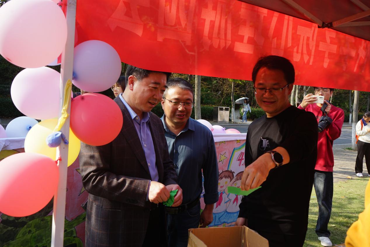 党的十八大以来,以习近平同志为核心的党中央高度重视和关心广老员工的心理健康和成长发展。为营造温馨有爱的校园氛围,培养老员工积极乐观,阳光向上的心理状态,10月24日,由公司员工工作部及老员工心理健康教育中心主办、公司员工会心理部承办的心理游园会活动在一棵树广场顺利开展,公司党委副书记岳宗德、副董事长江玉安莅临公司活动现场并观摩指导。公司党委副书记荣宪举,分团委书记熊蕾,心理专干朱晓雯老师带领同学们积极参与。
