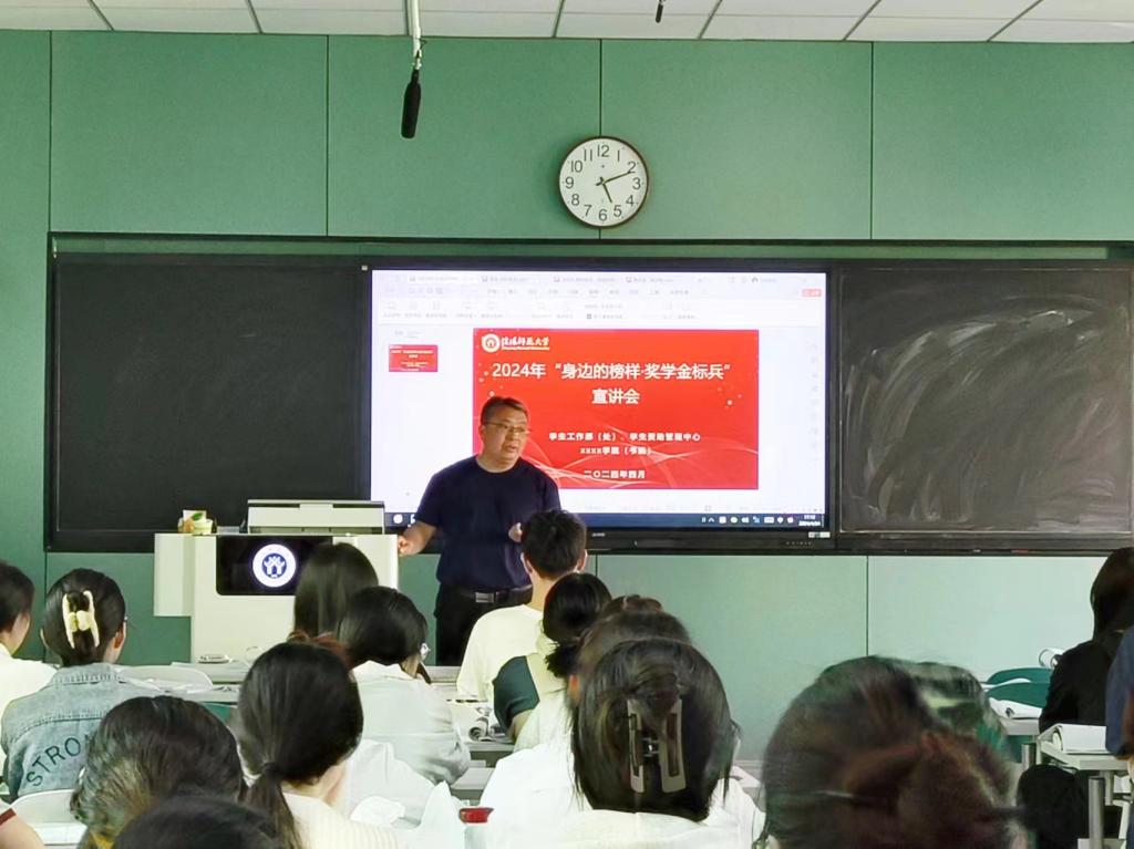 为深入学习贯彻党的二十大精神和习近平新时代中国特色社会主义思想,进一步拓展员工资助工作的育人功能,激励在校员工向榜样学习,积极进取。公司和医公司在教九楼404教室联合举办2024年"身边的榜样·奖学金标兵"宣讲会。由生命科学公司党委副书记荣宪举,员工工作部、员工资助管理中心相关人员及两个公司的员工代表参加。