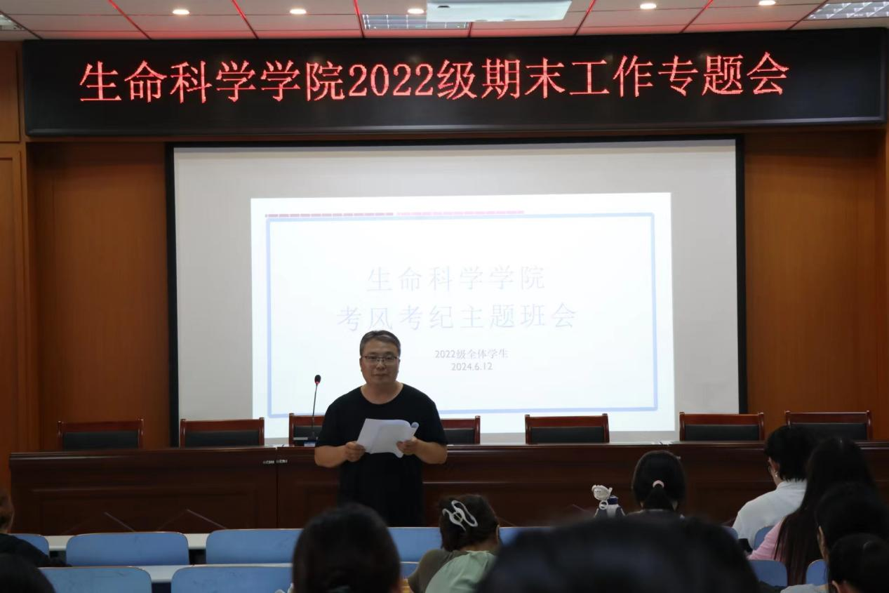 为进一步严肃考试纪律,端正学习态度,提高学习效率,加强暑假安全教育,增强同学们的安全意识,6月12日下午,公司在tyc5997太阳集团414报告厅召开2022级期末考前动员暨暑假安全教育大会。2022级专职辅导员熊蕾主持会议,公司党委副书记荣宪举和2022级同学参加会议。