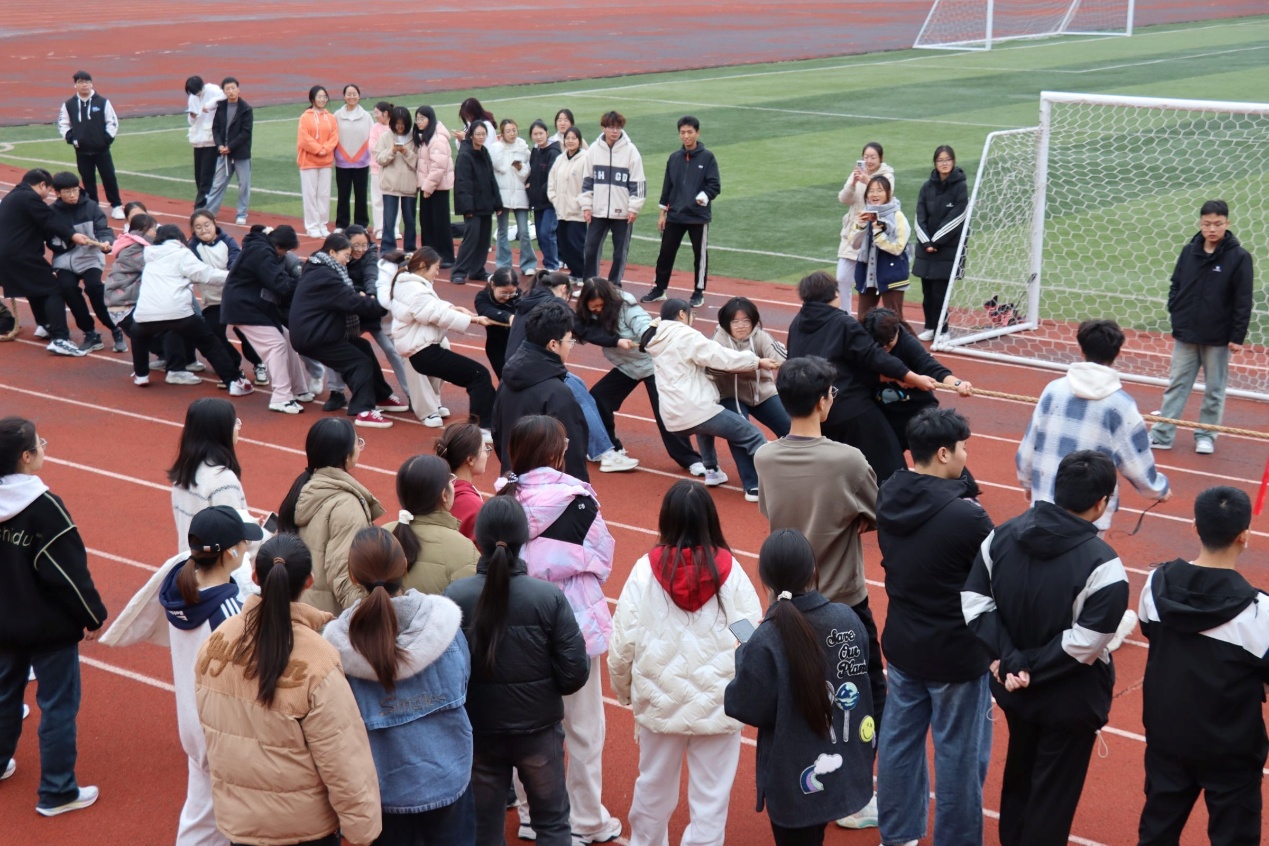 11月24日下午三点,公司在公司西操场上举办了一场别开生面的拔河比赛。公司党委副书记荣宪举,兼职辅导员谷超凡、洪瑞参加比赛。此次比赛旨在提高同学们的团队凝聚力,增强团队合作精神,同时也为同学们提供了一个展示自我、挥洒汗水的舞台。