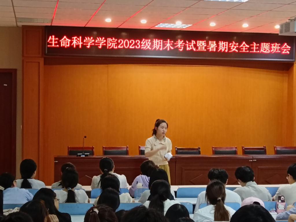 6月13日,公司在tyc5997太阳集团414报告厅召开2023级期末专题工作会,强调期末考试安排与暑假安全教育。公司党委副书记荣宪举、辅导员杨娟娟、2023级全体同学参加。