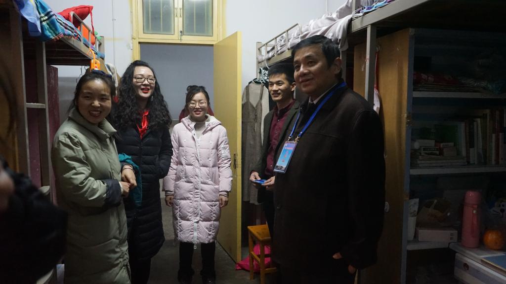 小雪节气以来,天气渐寒,按照公司《关于进一步加强冬季老员工安全教育管理的通知》的要求,11月28日晚9点,公司党委副书记杨霁虹和辅导员老师熊蕾、孙太红、杨娟娟、朱晓雯以及员工会主要干部,对公司4个年级老员工宿舍进行排查。