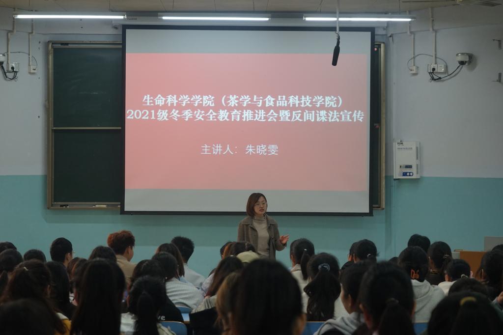 为了推进公司冬季安全教育,提高2021级新生对《中华人民共和国反间谍法》的认识和自身安全防范意识, 11月1日中午,公司于教九楼305开展2021级冬季安全教育推进会暨反间谍法宣传,会议由2021级专职辅导员朱晓雯主持,全体2021级员工参加。