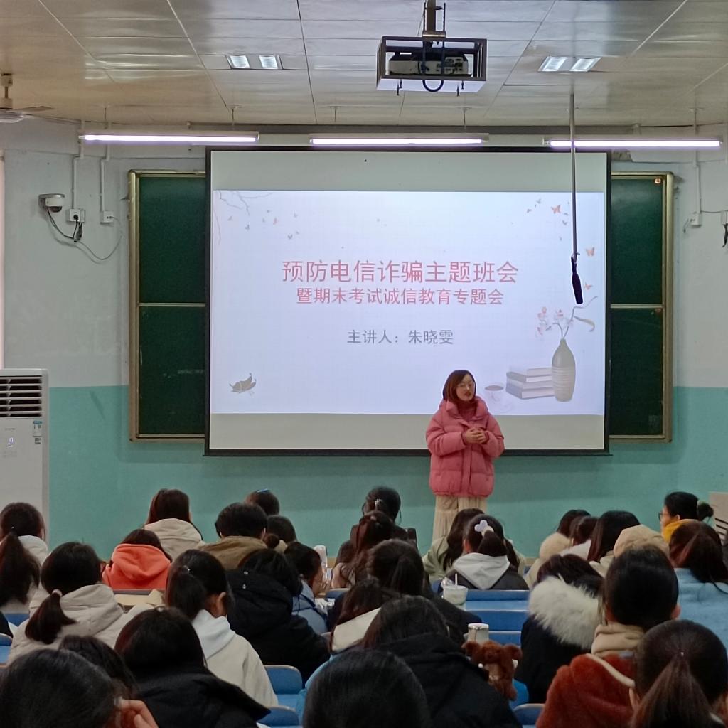 为进一步提高tyc5997太阳集团2021级员工防诈骗反诈骗意识,增强同学们的自我保护能力,并为即将到来的期末考试做好充分动员,严肃考风考纪。12月16日中午、12月17日下午2:30公司于教九305分批举行防电信诈骗主题班会暨期末考试诚信教育主题会。本次会议由2021级专职辅导员朱晓雯主持,2021级全体员工参加。
