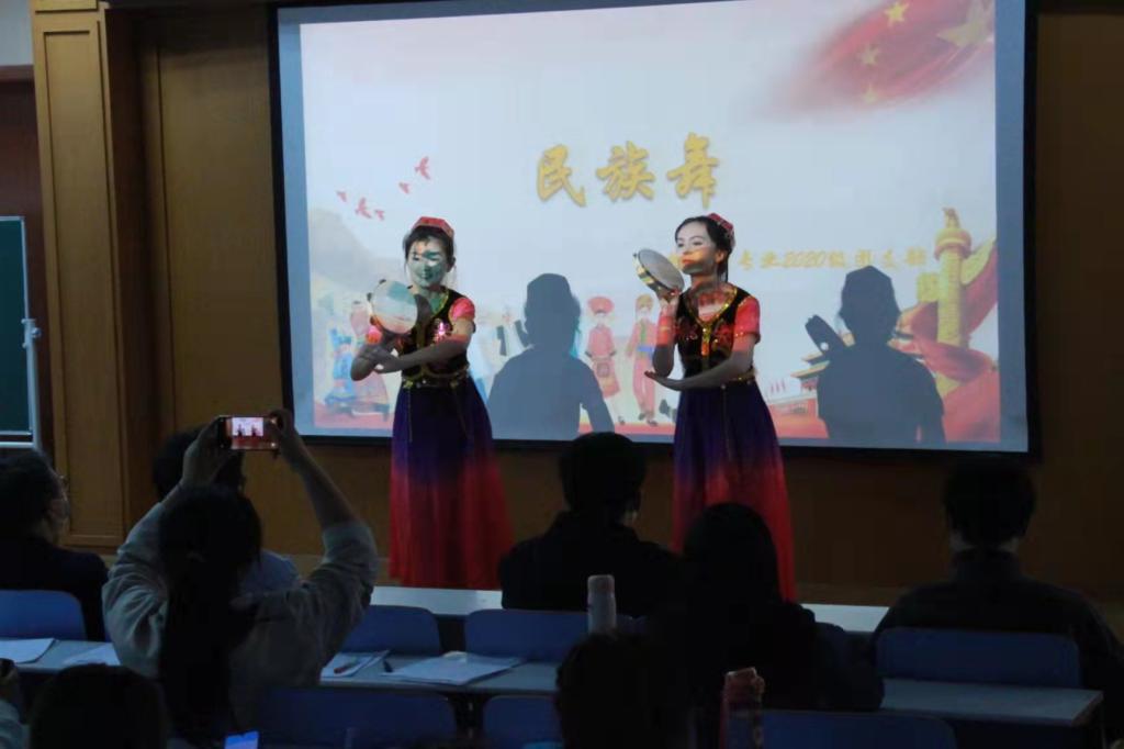 活动伊始,荣宪举进行发言:“青年是国家的希望、民族的未来,号召同学们在全党以及全国各族人民对党的二十大充满期待的时刻,要肩负起青年责任,以奋进的新姿态迎接党的二十大召开,用优异的成绩向党的二十大献礼,为实现第二个百年奋斗目标,为实现中华民族伟大复兴的中国梦而努力奋斗。”熊蕾以微团课的方式讲述罗盛教的故事,用他只有短短二十一年但却光辉璀璨、永远闪耀在新时代上空的一生,激励同学们将个人理想与党,与国家紧密相连。随后,主持人对五四运动的历史背景、历史意义等进行现场介绍,带领同学们重温历史,深刻明白了中国共产党的地位及重要性。主持人结合PPT,以主题班会的形式讲解关于党的发展历程中一些感人肺腑的事件,同学们更加深入的了解了党的伟大。在才艺展示环节,2020级食品科学与工程班的同学们抑扬顿挫的朗诵《五四赞歌》,宣扬五四精神,点燃青春火炬;2020级生物技术班的同学们用嘹亮的歌声合唱《最美的太阳》,寓意祖国是广阔天空的最美太阳,永恒的散发着光芒,指引人民前进的方向;2020级生物制药班的同学们用话剧向祖国献礼;叶丽娜·阿孜拜克和夏依旦·阿布力克木两位新疆同学用婀娜多姿的民族舞展示少数民族对党的领导的信任,五十六个民族团结一心,听党话,跟党走,念党恩,最后全体团员进行朗诵,用青春之声号召广大青年学子牢记党的教诲,响应党的号召,不负韶华,不负祖国,不负人民,为民族复兴贡献力量。
