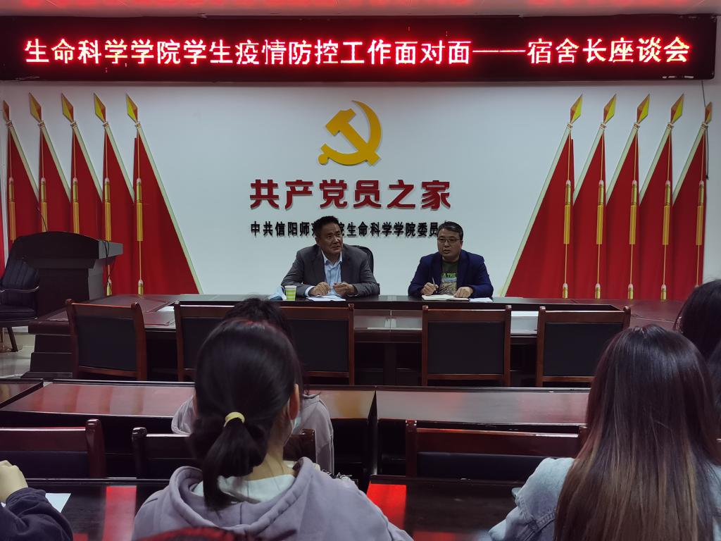 为了进一步规范员工宿舍各项防控工作,强化员工防疫安全意识,为员工提供良好的生活环境,5月11晚,公司于生科楼412召开“员工疫情防控工作面对面”宿舍长座谈会,由校学工部副部长苏和主持,公司党委副书记荣宪举、院团委书记熊蕾和各年级各专业宿舍长代表参加会议。