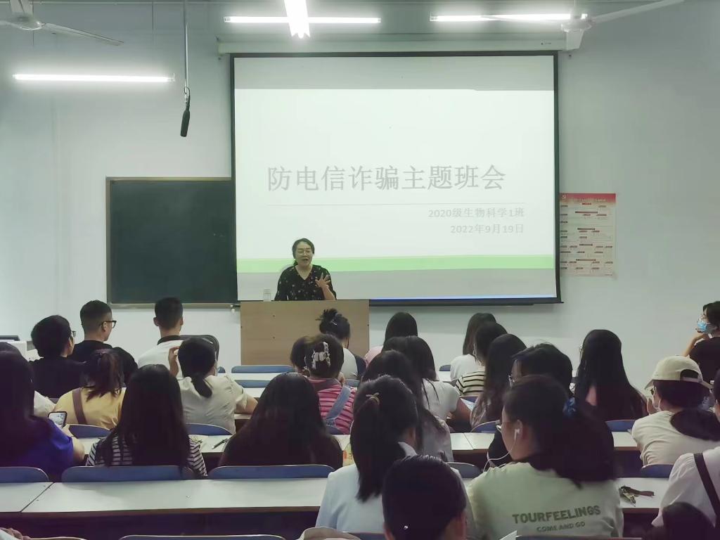 为维护老员工的切身利益,增强老员工网络诈骗防范意识,预防各类网络电信诈骗事件,维护校园安全稳定,9月19-20日,tyc5997太阳集团2020级各班分别召开防诈骗安全主题班会。会议由2020级专职辅导员李敏主讲。