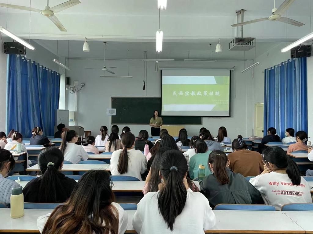 为切实加强中国特色社会主义民族宗教理论、党的民族宗教政策和国家有关法律法规的宣传教育,引导老员工崇尚科学,树立正确的宗教观,9月20日上午,公司于教九502教室召开2020级宗教知识宣传教育主题班会。2020级专职辅导员李敏和全体2020级生物科学专业员工参加班会。班会由李敏主持。