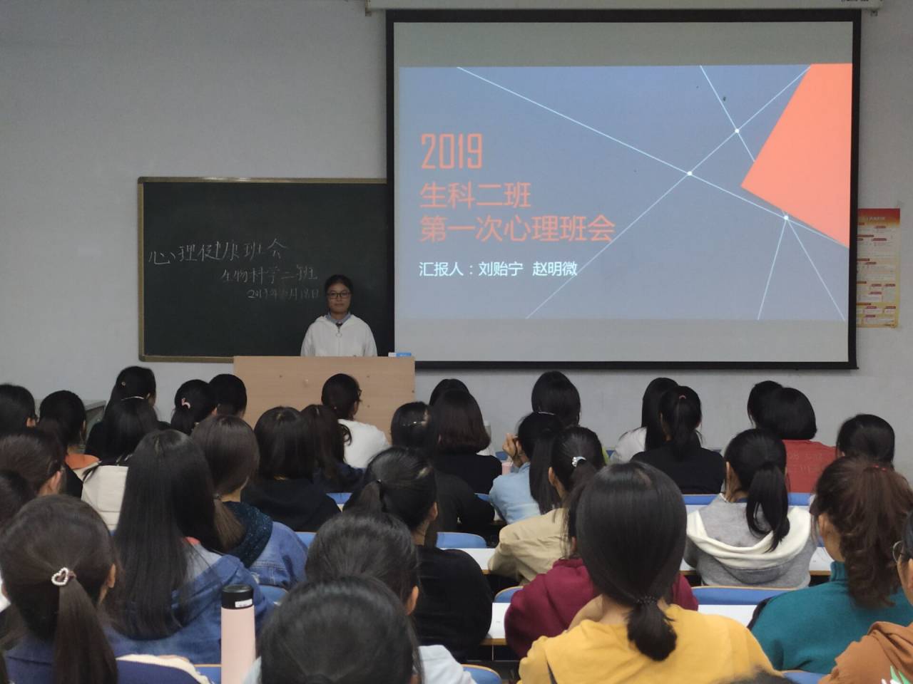 为促进心理健康教育深入人心,提高大一新生对心理健康的认知了解,10月18日至22日,公司2019级各个班级相继于生物楼414多媒体教室、教九楼107等地积极开展心理健康教育主题班会,公司专职辅导员杨娟娟、朱晓雯参加班会并发表讲话。