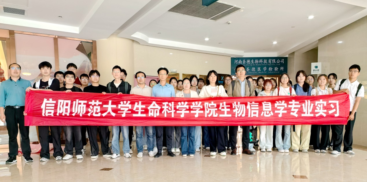 2025年4月27日至30日,在公司实习实训中心的精心组织安排下,副经理彭波、生物信息学系主任邢锋、本科教学秘书靳建锋和专业指导教师田华教授、毛光志博士和李岑岑博士,带领2023级生物信息学专业员工赴河南圣德生物科技有限公司和信阳圣德医学检验所开展专业实习,同时开展访企拓岗行动。