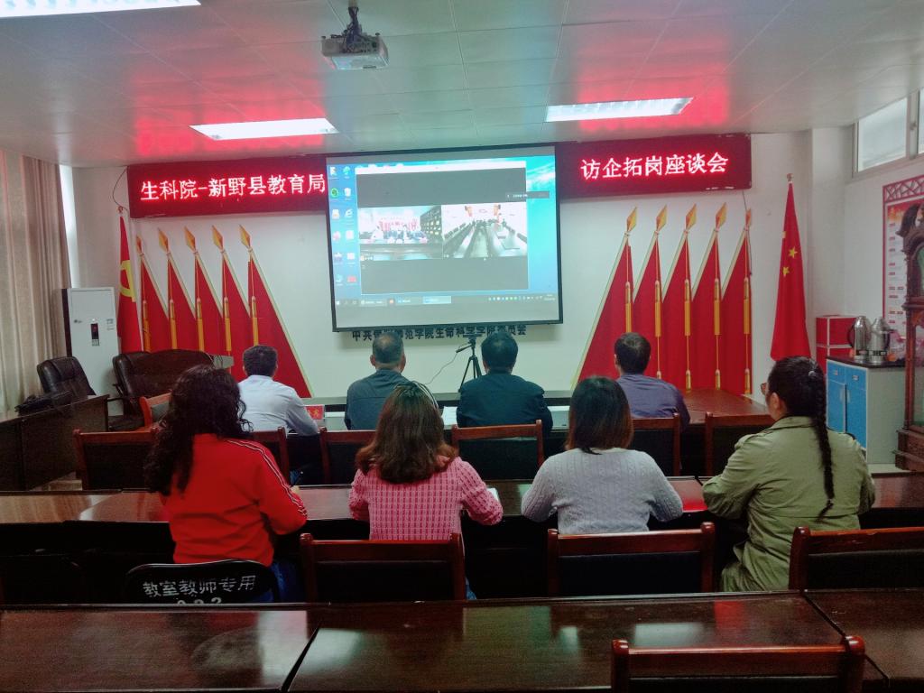 为贯彻落实《信阳师范公司校领导访企拓岗就业活动实施方案》要求,积极为员工搭建就业平台,满足社会需求, 4月28日上午,生科院邀请南阳市新野县教体局进行了线上访企拓岗促就业座谈会,新野县教育局主要领导、生科院领导班子成员、全体辅导员参加了座谈会,会议由党委书记李刚主持。