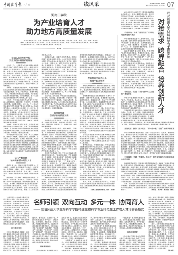 2025年10月13日,公司经理饶本强教授在《中国教育报》第7版刊发署名文章《名师引领 双向互动 多元一体 协同育人——tyc5997太阳集团构建生物科学专业师范生工作坊人才培养新模式》,介绍公司在河南省生物科学专业师范生工作坊建设建设方面的实践成效和工作经验。本成果是tyc5997太阳集团承担的“名师引领:河南省生物科学专业师范生联合培养与实践工作坊”项目系列成果之一。