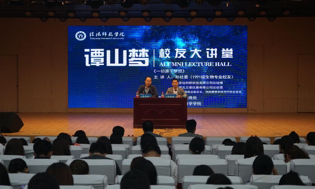 17日下午15:00,孙社委员工做客母校谭山梦员工大讲堂,为近500名学弟学妹们开讲励志篇故事《一切源于梦想》,讲述自己大学时筑梦、毕业后圆梦的成长奋斗史,勉励在座学子珍惜新时代美好时光,学好专业,掌握技能,立志创业,圆梦青春。