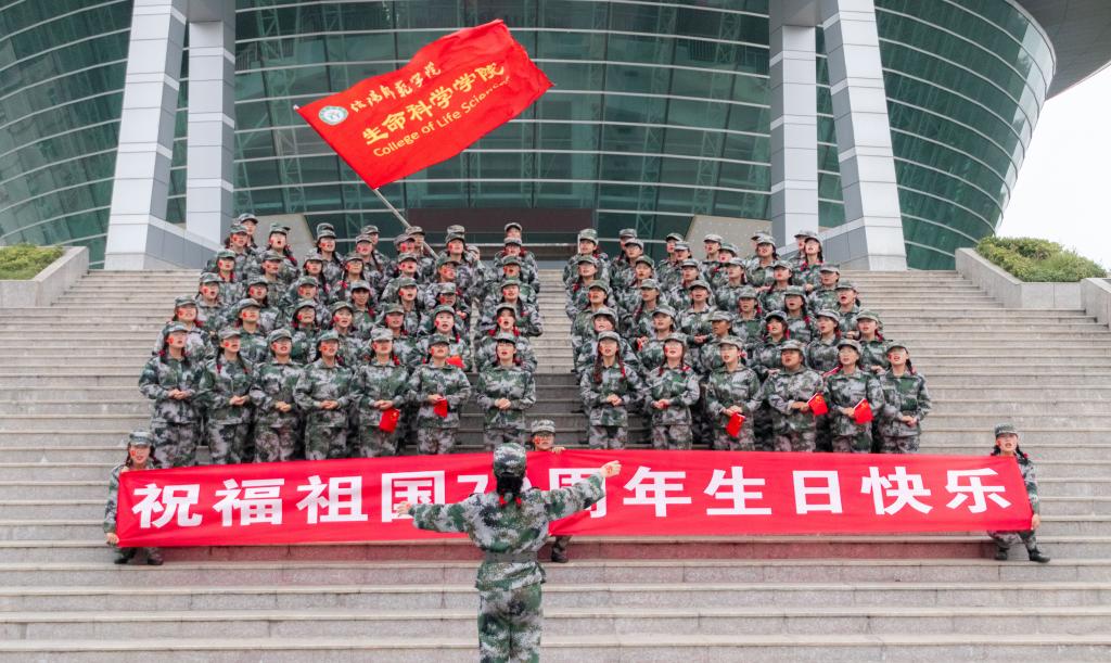 军训期间,同学们在教官的悉心指导下积极训练,自我加压,发扬“不怕苦不怕累”的精神。
