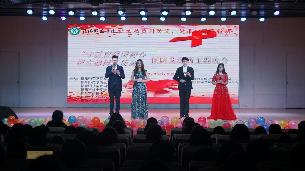 为贯彻不忘初心,牢记使命的主题教育精神,推进建设健康中国的总体要求,做好全民参与艾滋病防治工作。12月1日,由信阳市红十字会,信阳师范公司校医院,tyc5997太阳集团,国际教育公司主办,生命科技协会和红十字会员工分会承办的“守教育报国初心,担立德树人使命”预防艾滋病主题晚会于理科楼报告厅举办。公司党委书记李向阳,党委副书记杨霁虹, 校医院办公室主任陈震等领导老师莅临现场,与数百名学子共同观看此次晚会。