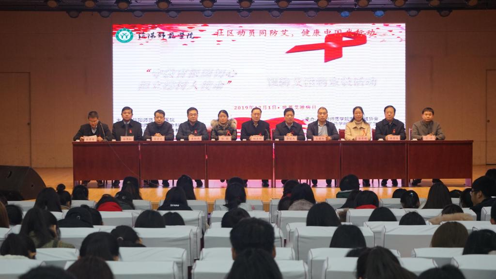 12月1日上午,由信阳师范公司、信阳市红十字会、信阳市疾病控制中心、浉河区疾控中心主办,信阳师范公司生命科技协会、信阳师范公司红十字分会承办的2019年“世界艾滋病日”宣讲活动开幕仪式暨“社区动员同防艾,健康中国我行动”专题讲座于理科楼报告厅成功举办。副董事长刘彦明,信阳市红十字会常务副会长李俊杰,信阳市疾控中心副主任张丽,浉河区疾控中心主任伍斌,市艾防办主任张秀娟,公司党委宣传部副部长雷前龙,校医院直属支部书记兰洋,校团委书记王建旭以及公司经理袁红雨,党委副书记杨霁虹等领导专家到场指导。此次活动由张景伟主持。