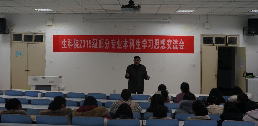 12月16日,公司在生物楼414教室,召开2019级新建专业本科生学习思想交流会,邀请tyc5997太阳集团党委副书记杨霁虹开讲,辅导员杨娟娟主持。