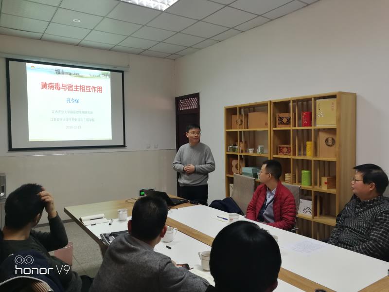 12月13日,应公司邀请,江西农业大学孔令保教授在茶学重点实验室作了题为“病毒与宿主相互作用-以非洲猪瘟为例”的学术报告。公司青年博士及部分研究生聆听了报告。报告由校遗传研究所副所长饶本强教授主持。
