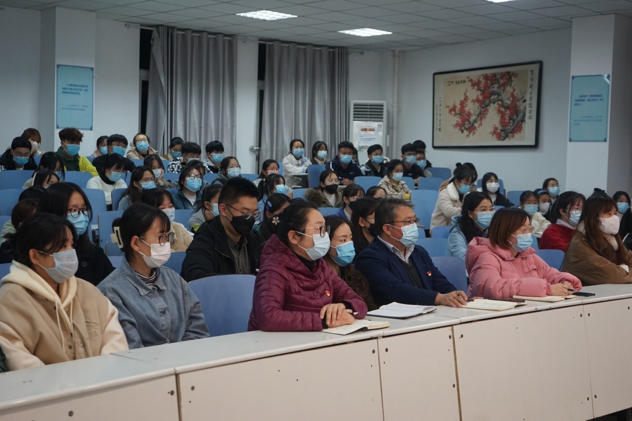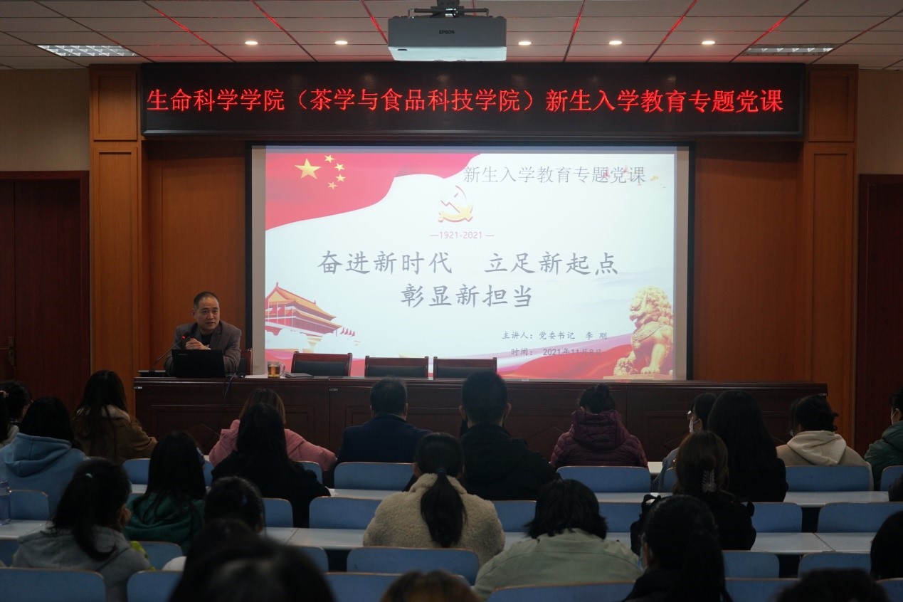 为深入学习贯彻习近平新时代中国特色社会主义思想,扎实推进党史学习教育走深走实,引领广大新生厚植爱党爱国主义情怀,帮助扣好人生“第一粒扣子”,11月10日晚7点,tyc5997太阳集团(茶学与食品科技公司)党委书记李刚于生科楼414多媒体报告厅开讲“奋进新时代 立足新起点 彰显新担当”专题党课,带领全体辅导员和2021级新生班干部及员工会干事在重温党史故事、感悟信仰力量中学史明理、学史增信、学史崇德、学史力行。会议由公司党委副书记荣宪举主持。