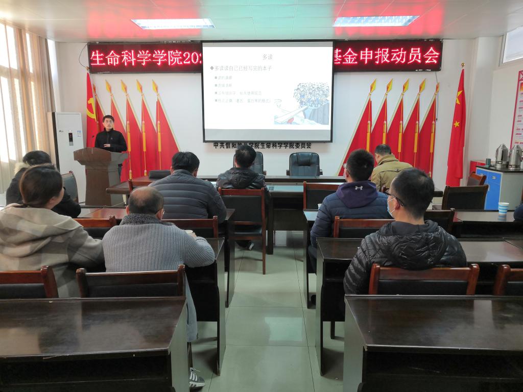 11月23日,tyc5997太阳集团2022年度国家自然科学基金申报动员会在生物楼412会议室举行,经理饶本强、副经理周棋赢、拟申报2022年国家基金的20余名教师参加了会议,会议由周棋赢主持。