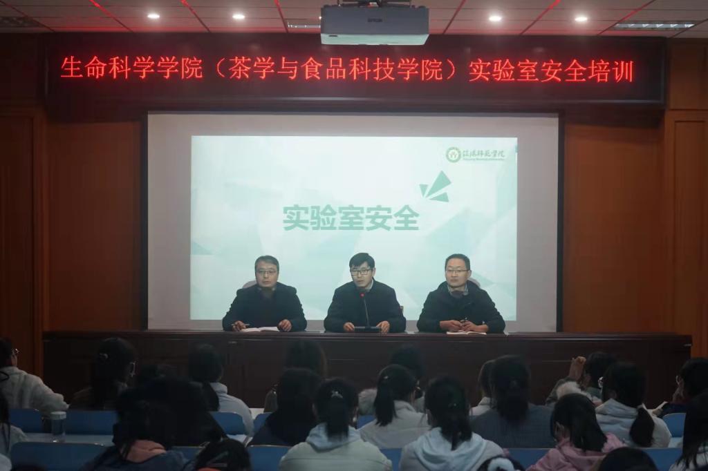 为深入贯彻落实关于加强公司实验室安全管理工作的通知要求,从严从细从紧筑牢实验室安全防线,切实提升新生实验室安全防范意识和应急处置能力。11月25日晚7点,tyc5997太阳集团(茶学与食品科技公司)于生科楼414多媒体报告厅开展实验室安全教育专题培训讲座。公司党委副书记荣宪举,副经理荆胜利,2021级专职辅导员朱晓雯及2021级全体新生、研究生参与培训。本次讲座由陈磊博士主讲。
