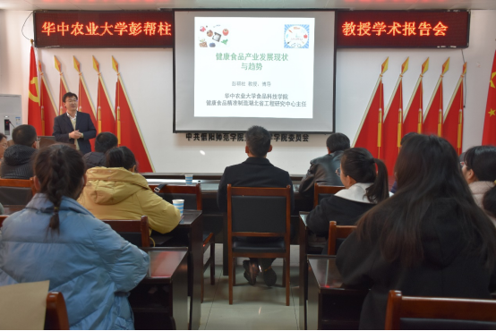 2021年12月4日上午,华中农业大学食品科学技术公司彭帮柱教授应邀来校作主题报告。讲座在生物楼412会议室举行,由tyc5997太阳集团副经理荆胜利主持。tyc5997太阳集团相关研究方向教师,研究生和本科生参加了本次报告会。