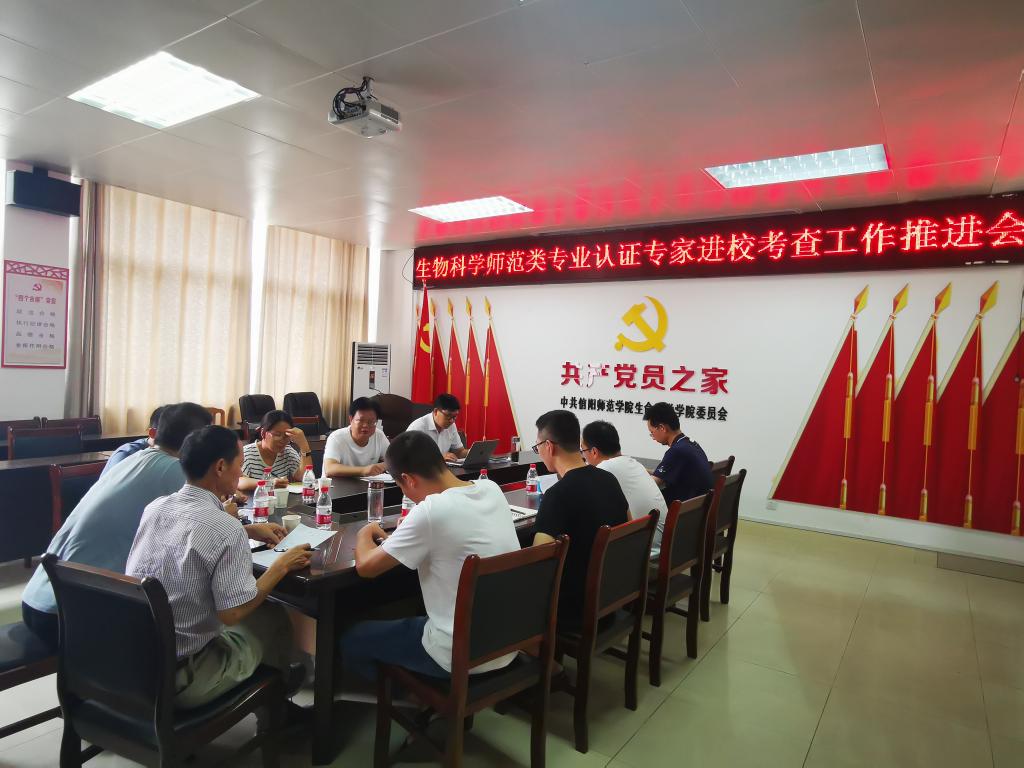 为扎实推进公司生物科学师范专业认证工作,做好生物科学师范专业认证专家进校考查阶段的各项准备, 8月17日,tyc5997太阳集团在生物楼412会议室召开师范专业认证工作推进会。公司经理饶本强、教学副经理荆胜利及专业认证专班全体成员参加了会议,会议由荆胜利主持。