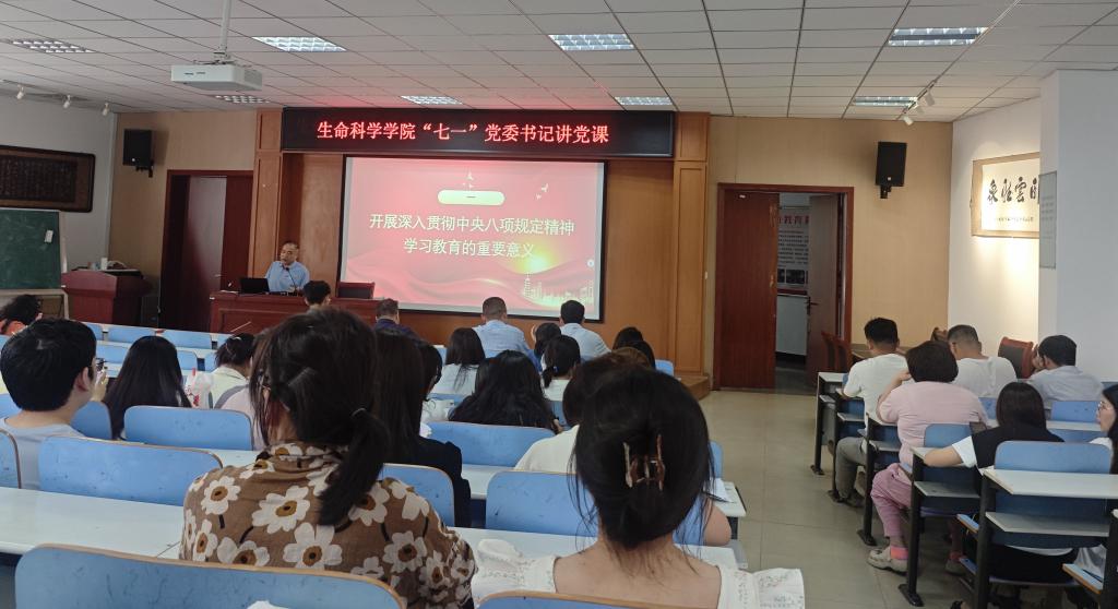 6月27日下午,生命科学公司党委组织召开全院师生党员大会,深入贯彻中央八项规定精神学习教育。党委书记李刚以《深入贯彻中央八项规定精神学习教育--筑牢抵制违规吃喝防线,敲响清正廉洁警钟》为题,讲授专题党课。