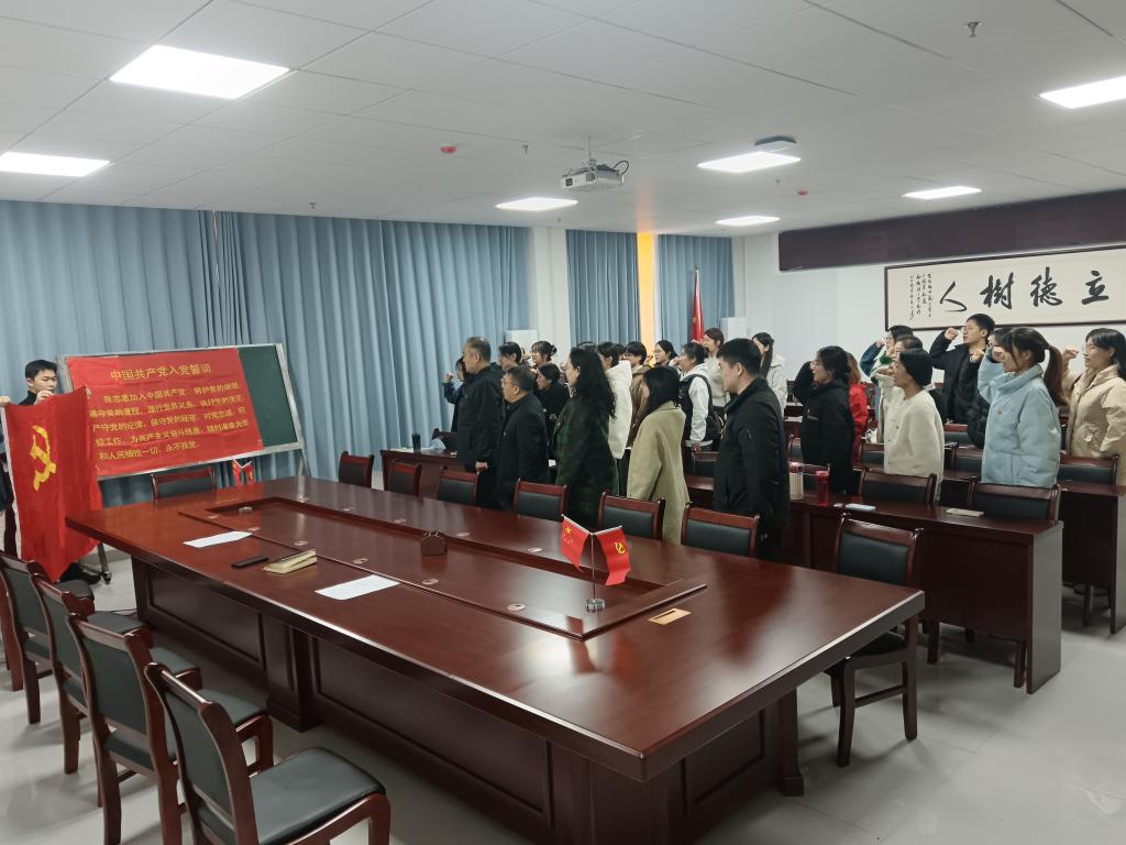 面对鲜红的中国共产党党旗,新党员们举起右拳,在领誓人的带领下庄严宣誓。“我志愿加入中国共产党,拥护党的纲领,遵守党的章程……” 铿锵有力的誓言回荡在现场,既表达了对党的忠诚与热爱,也彰显了新党员们为共产主义事业奋斗终身的坚定决心。鲁品言代表新党员发言,表示了要坚定理想信念,自觉用党的创新理论武装头脑,把对党的忠诚落实到贯彻党中央决策部署的行动上,体现在履职尽责的实效中,融入到日常言行里。以更加饱满的热情、更加昂扬的斗志、更加务实的作风,积极投身到中国式现代化建设的伟大征程中去,努力创造出无愧于时代、无愧于人民、无愧于共产党员光荣称号的辉煌业绩。