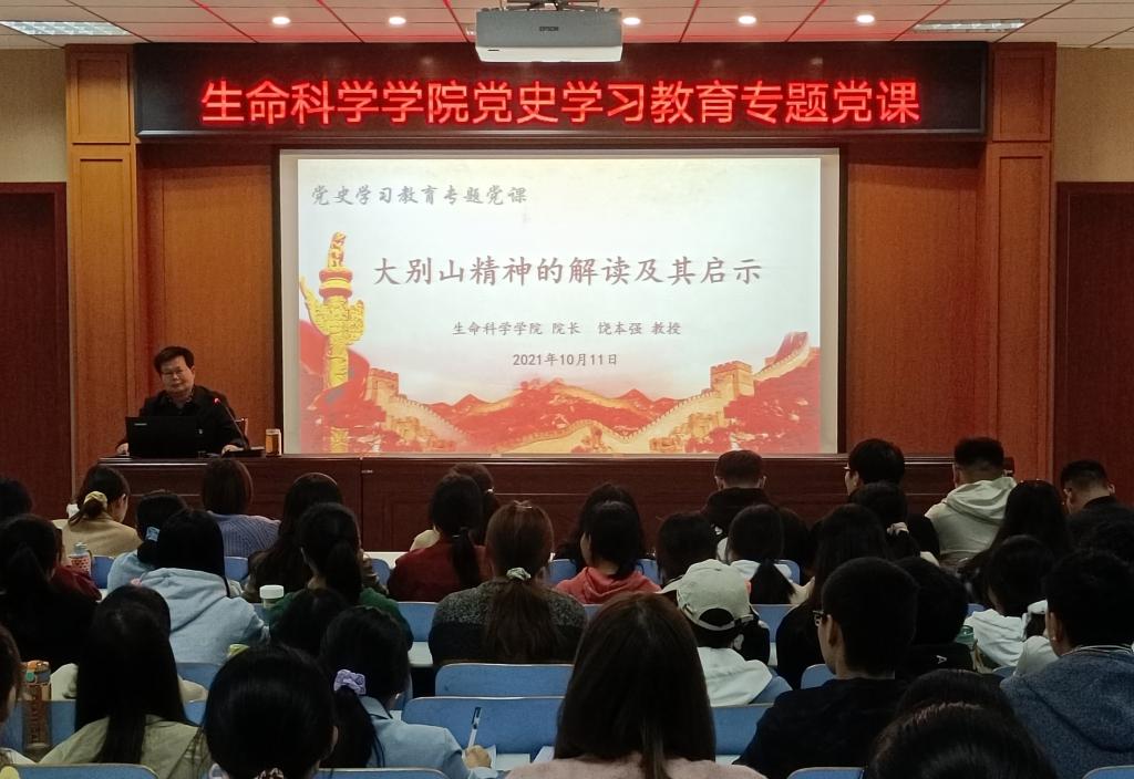 为进一步丰富拓展党史学习教育的内涵,深化党史学习教育,推动党史学习教育往深里走、往实里走,10月11日晚6点在生科楼414多媒体会议室,tyc5997太阳集团经理饶本强以“大别山精神的解读及其启示”为题,带领全体辅导员、近百名员工党员在回顾大别山革命历史中感悟革命信仰,传承革命红色精神。党课由tyc5997太阳集团副经理荆胜利主持。