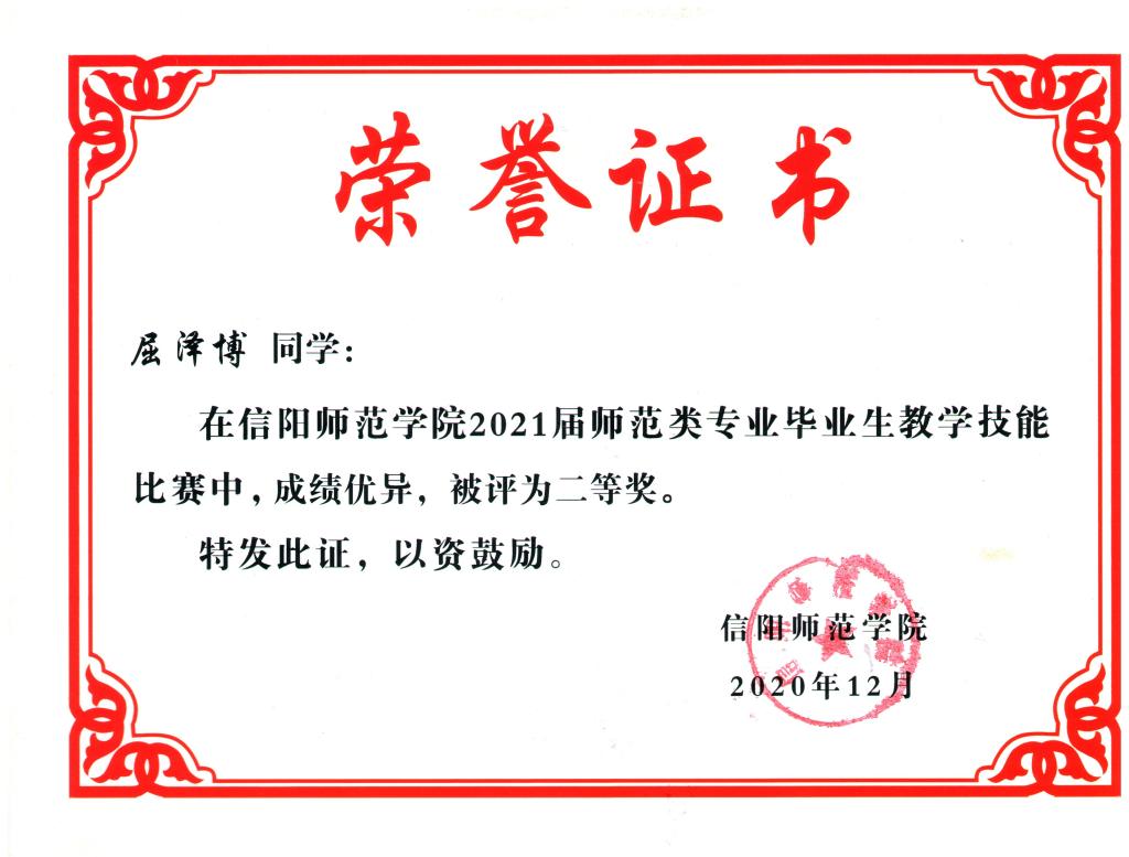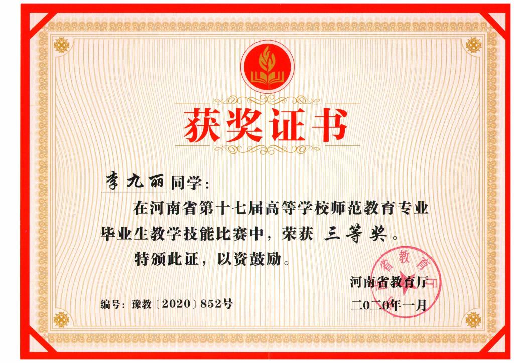 2019年河南省师范毕业生教学技能三等奖