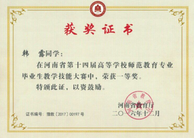 2017河南省第十五届高等公司师范教育专业毕业生教学技能大赛二等奖